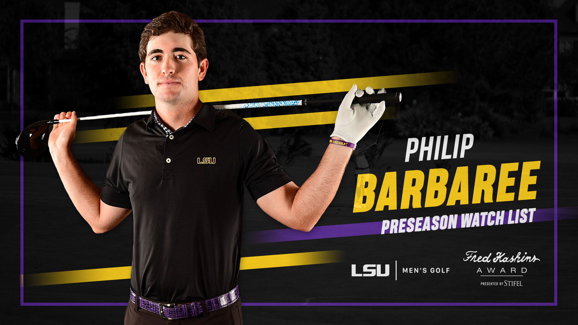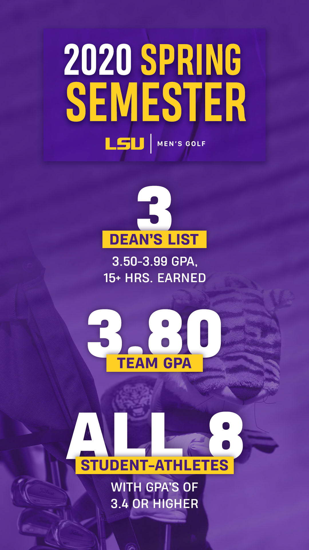 LSU Men's Golf 2019-2020 season branding.