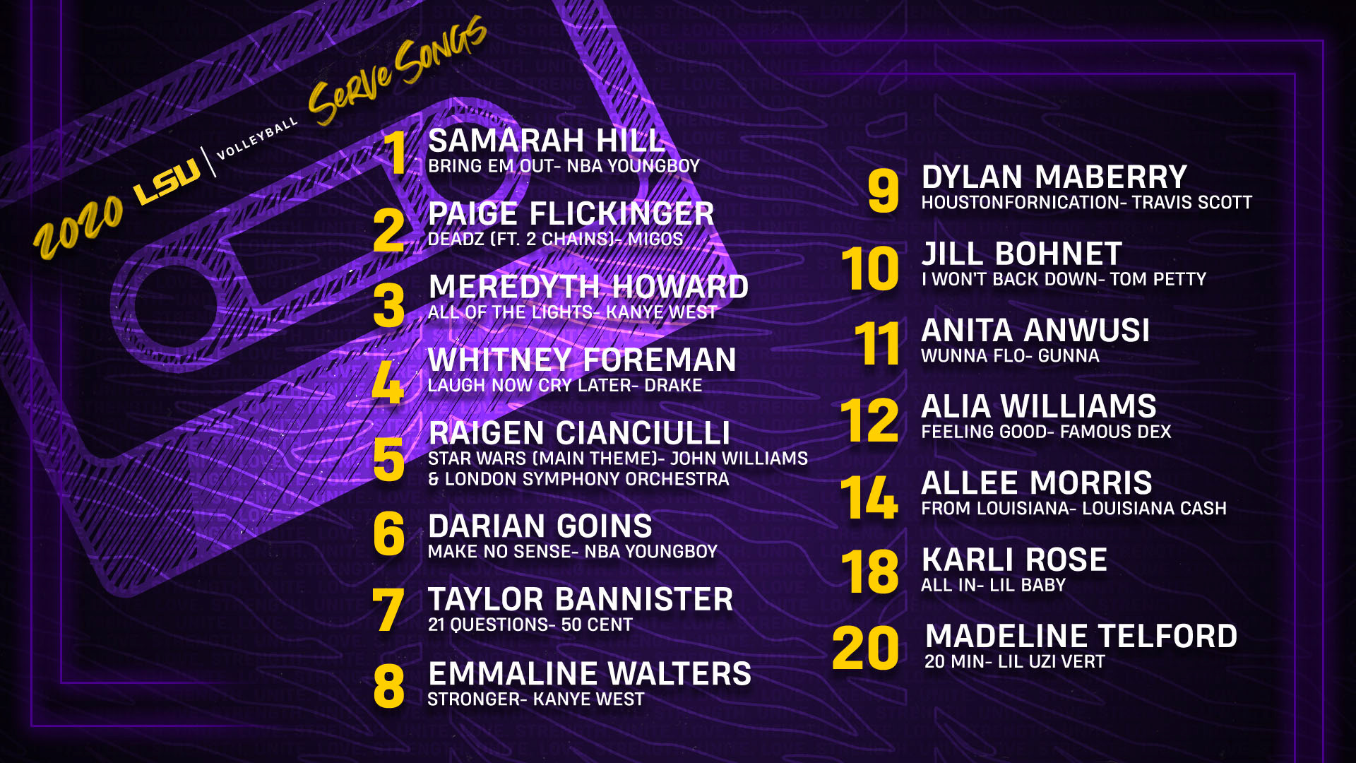 LSU volleyball 2020-2021 season branding.